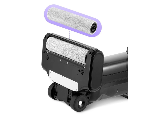 Моющий пылесос оснащён функцией самоочистки, что очень удобно и экономит время. При самоочистке вода подаётся на валик турбощётки, смывая загрязнения, а затем попадает в резервуар для грязной воды. Самоочистка включится только при уровне заряда выше 20%.