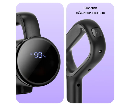 Пылесос оснащён двумя дисплеями: на ручном модуле и основной части пылесоса. На них вы можете наблюдать за уровнем заряда устройства. Кнопки Вкл/Выкл, Подача воды и Самоочистка так же находятся на ручке пылесоса.