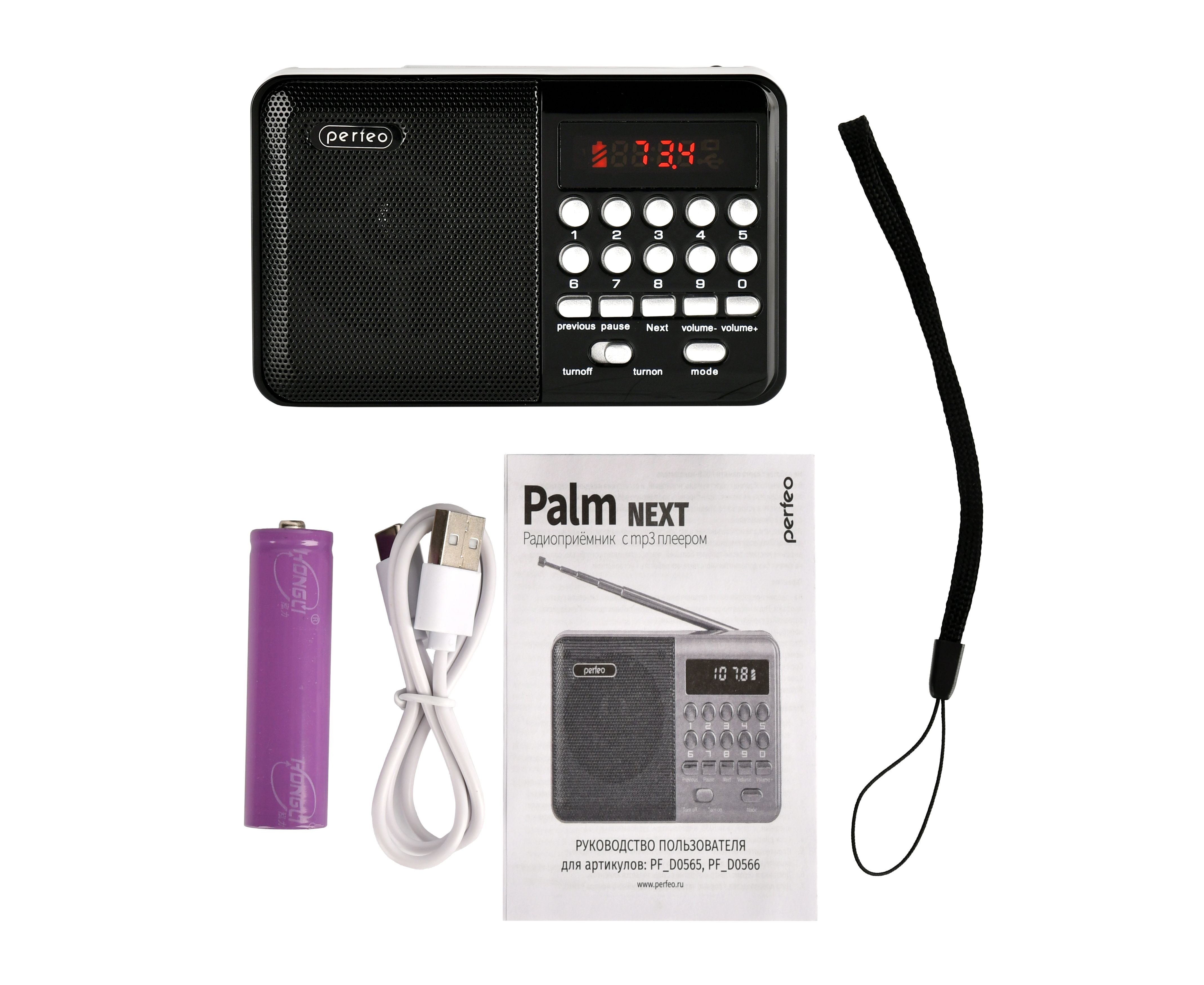 Радиоприемник цифровой Perfeo PALM (i90). Радио с расширенным функционалом умеет воспроизводит MP3-файлы с карт памяти и USB-флэшек. Приемник может работать не только от аккумуляторов (18650), но и от адаптера для зарядки (в комплект не входит) подключенного в сеть 220В. Радиоприемник от сети имеет встроенное цифровой тюнер FM (87,5 – 108 МГц) с автоматическим поиском станций. Радио оснащено поворотной телескопической антенной, возможность воспроизведения музыки с USB flash и microSD карт памяти, вход AUX для подключения источника звука. LED-дисплеем (отображает номера mp3-треков и частоту радиостанции). В комплекте идет кабель miniUSB для зарядки радиоприемника. Радиоприемник мини компактного размера удобно переносить, он помещается в карман. Это радио на аккумуляторе можно слушать даже ночью и не беспокоится, что можно кого-то разбудить, ведь у колонки с радио есть разъем для наушников. Радио PALM – отличный попутчик для поездок, путешествий и прогулок. Радиоприемник от сети и аккумулятора - легкий, удобный, компактный и многофункциональный, не займет много места и не оставит вас без любимой музыки. В нашем ассортименте магазина Perfeo есть множество портативных радиоприемников, они станут отличным подарком для родителей, дедушек и бабушек, подарят хорошее настроение и станут украшением вашего интерьера, прекрасно впишутся в любой дизайн, как дома, так и на даче, незаменимы в походе. Радиоприемник легко зарядить от повербанка, он не прихотлив в использовании.