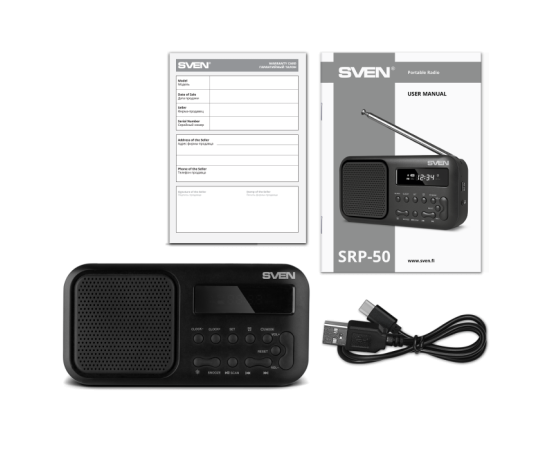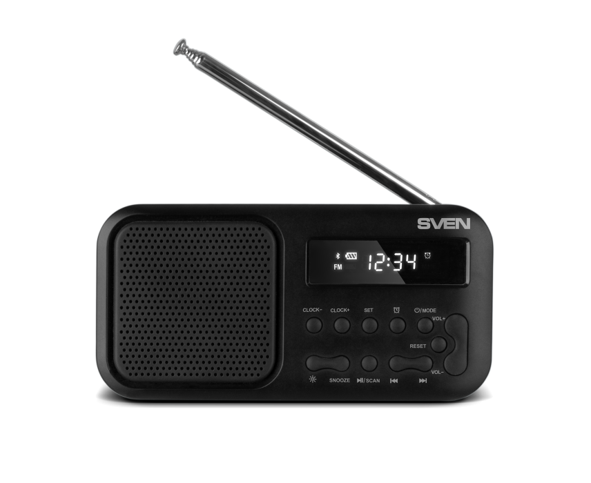 Радиоприемник SVEN SRP-50, черный (3 Вт, Bluetooth, FM, USB-C, 3.5мм jack, ,будильник, встроенный аккумулятор)