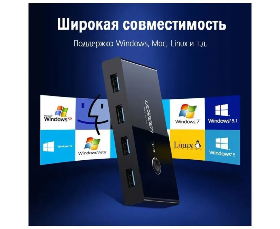 Разветвитель портов UGREEN US216 (30768) 2 In 4 Out USB 3.0 Sharing Switch Box. Цвет: черный