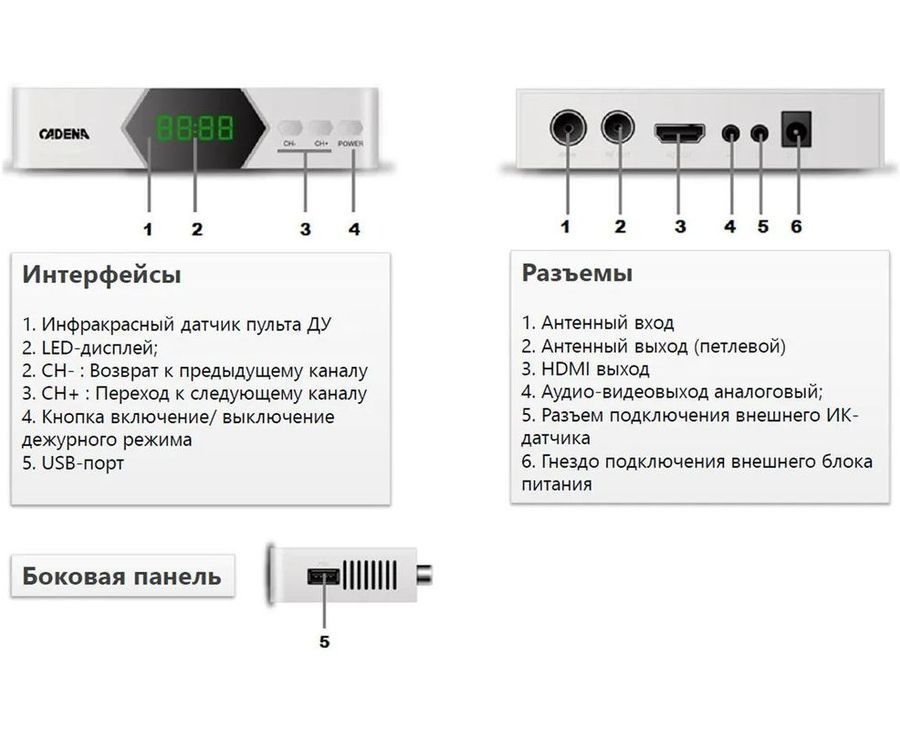 Ресивер DVB-T2 Cadena CDT-2214SB белый