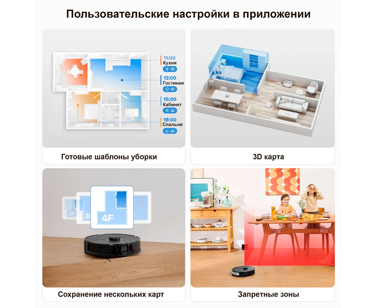 Робот-пылесос, зарядная док-станция, кабель подключения в сеть, влагостойкая подставка, инструкция пользователя