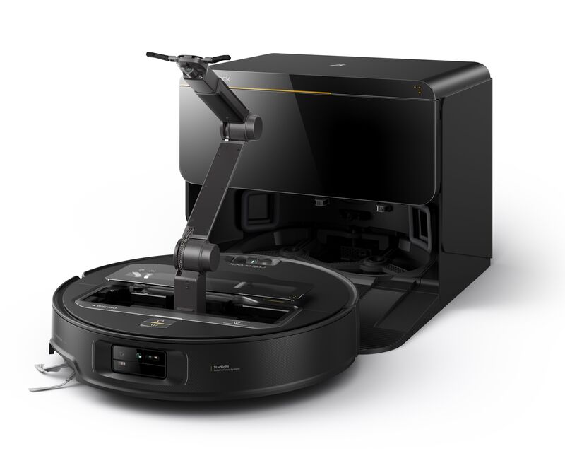 Дополнительные функции Самоочистка на станции; Полоскание салфетки на станции; Сушка салфетки теплым воздухом; Дозаправка бака для воды в роботе на станции; Распознавание предметов на полу; Сохранение нескольких карт уборки в памяти; Автоматическое сегментирование площади на комнаты; Выбор локальных участков и комнат для уборки; Участки с запретом на уборку; Обнарожение питомца; Видеозвонок и видео-круиз; Регулировка мощности всасывания; Регулировка степени смачивания салфетки; Интенсивный режим влажной уборки; Пользовательский режим; Журнал уборок; Настройка уборки по графику; Увеличение мощности на ковре; Объезд ковров в режиме влажной уборки; Подъем салфетки при заезде на ковры; Подъем центральной щетки в режиме мойки пола и при возврате на станцию; Голосовые оповещения; Уборка на черных напольных покрытиях