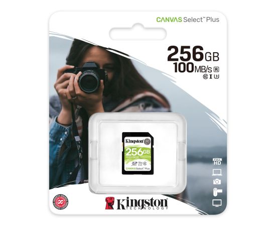SDXC 256GB Kingston Class 10 UHS-I U3 V10 Canvas Select Plus (100 Mb/s)