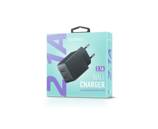 Сетевое зарядное устройство 2USB, 2,1A, черное