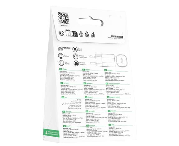 Сетевое зарядное устройство BOROFONE BA102A/ + Кабель Type-C 1m/ QC 3.0/ 1 USB/ Выход: 18W/ Белый