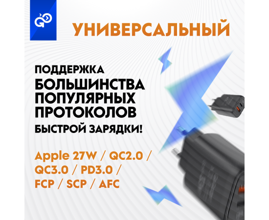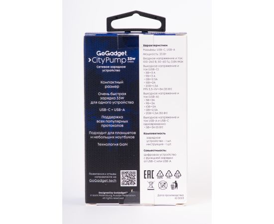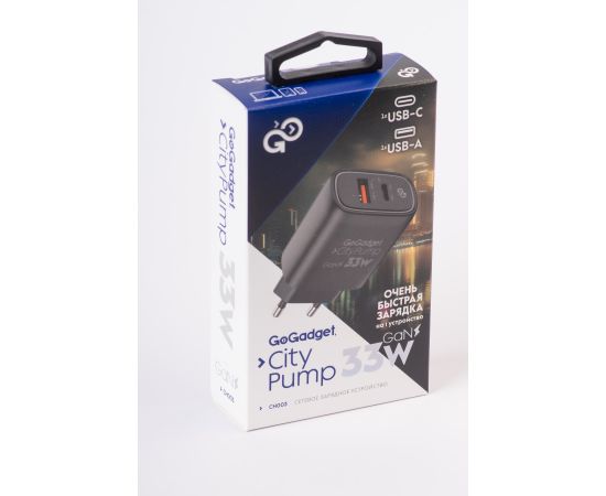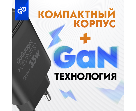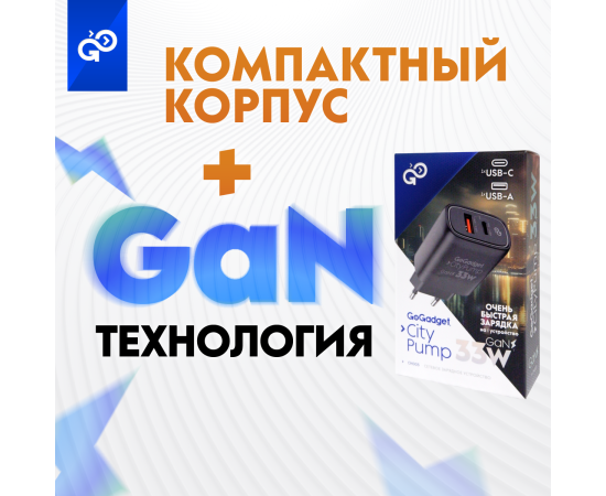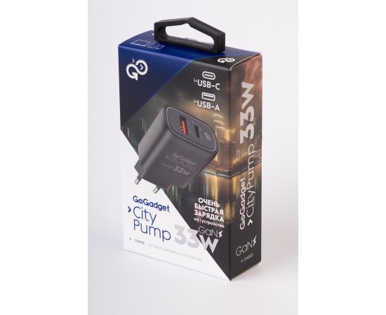 Сетевое зарядное устройство CityPump 33W 1хUSB-C 1xUSB-A GaN, ЧЕРНЫЙ