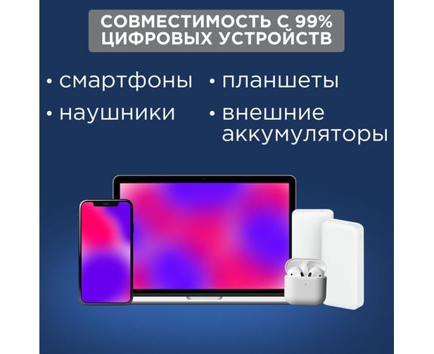 Благодаря разъёму USB-C устройство совместимо с большинством современных девайсов. Прочный термостойкий корпус и компактные размеры обеспечивают лёгкость в использовании.