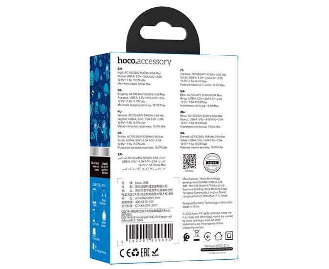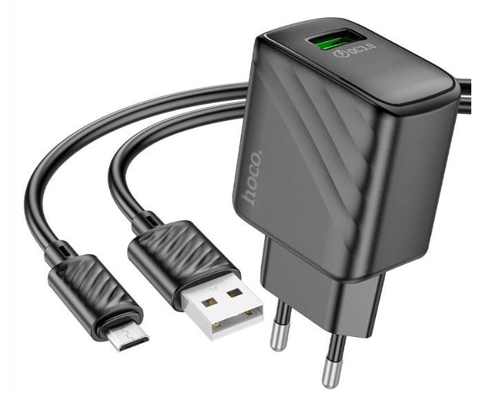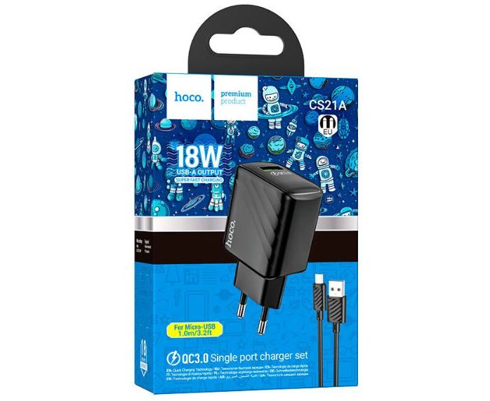 Сетевое зарядное устройство HOCO CS21A/ СЗУ + Кабель Micro 1m/ QC 3.0/ 1 USB/ Выход: 18W/ Черный