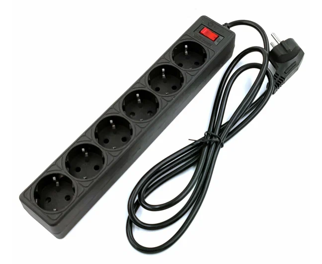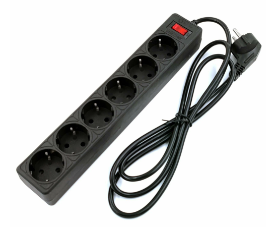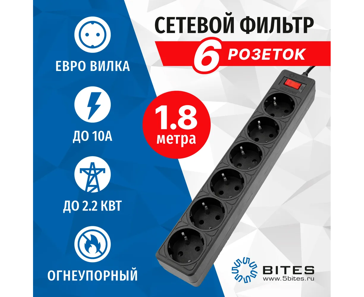 Сетевой фильтр 5bites Garda SP6B-518 6S, 3*0.75mm2, 1.8M, Black