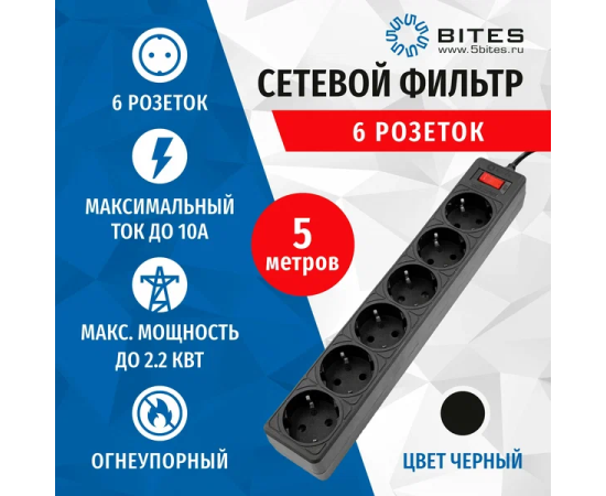 Сетевой фильтр 5bites Garda SP6B-550 6S/3*0.75mm2/5M/Black