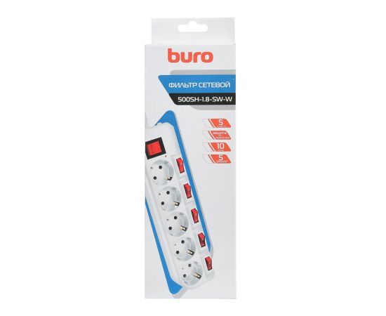 Сетевой фильтр Buro 500SH-1.8-SW-W 1.8м (5 розеток) белый