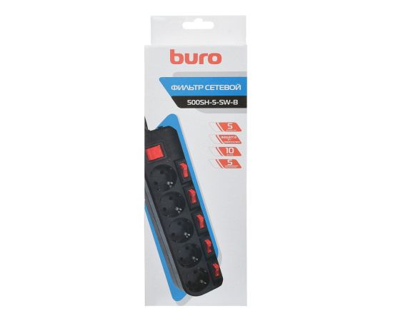 Сетевой фильтр Buro 500SH-5-SW-B 5м (5 розеток) черный
