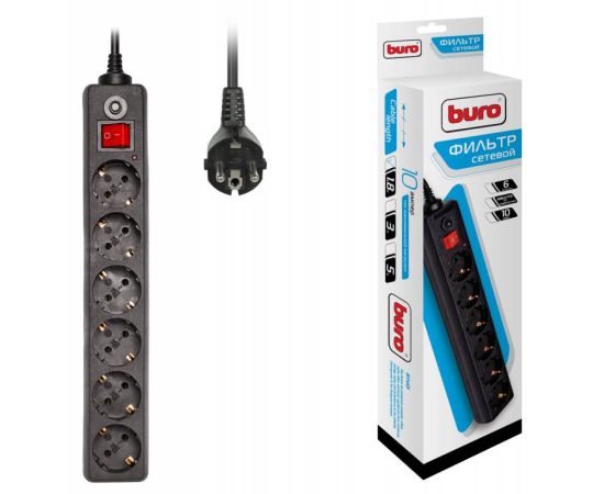 Сетевой фильтр Buro 600SH-1.8-B 1.8м (6 розеток) черный