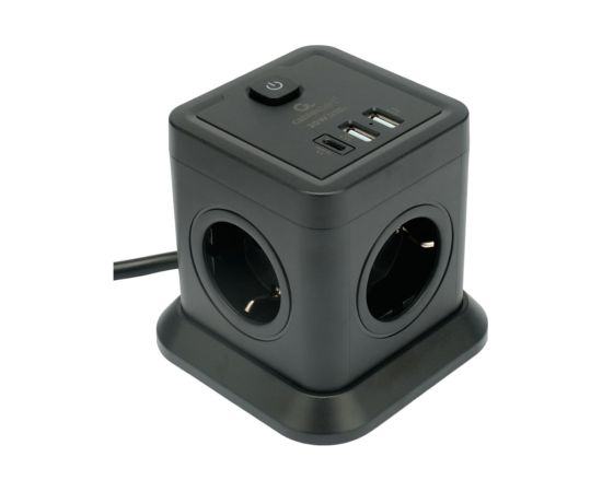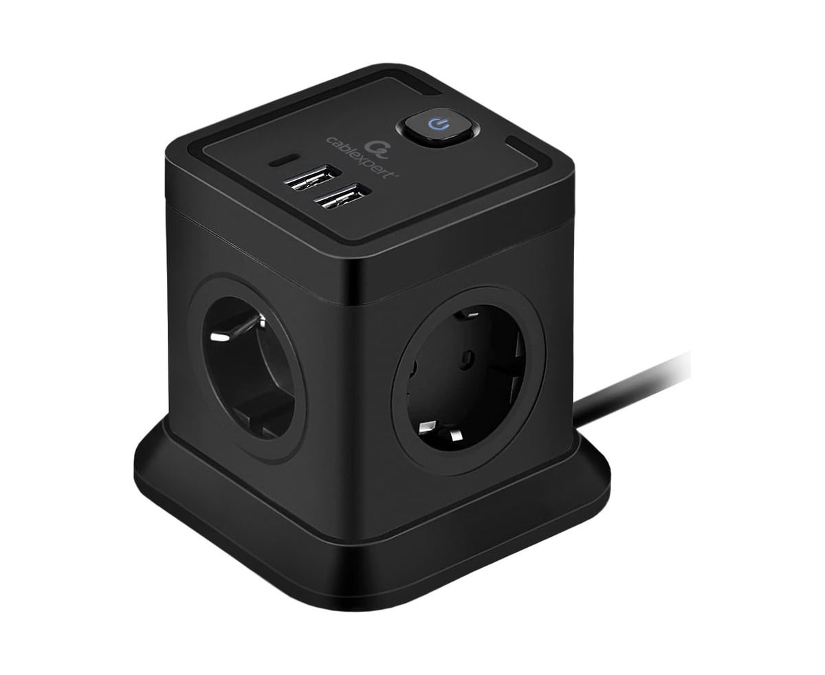 Сетевой фильтр Cablexpert Tower TWR-4-CU2-B-2 черный, 4 розетки