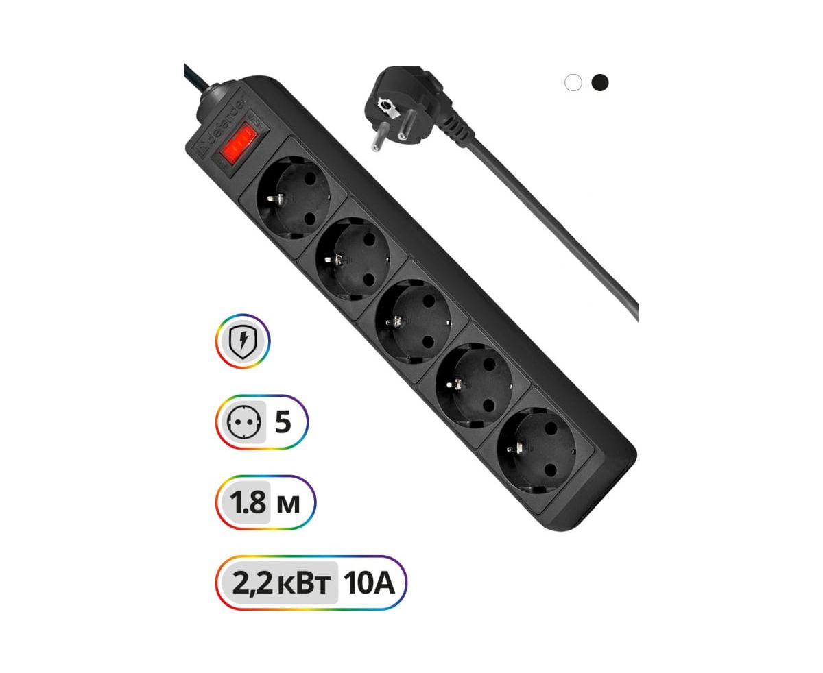 Сетевой фильтр DEFENDER ES 1.8 1,8 м, черный, 5 розеток (99484)