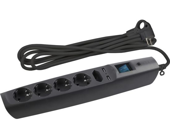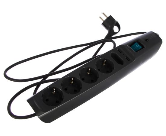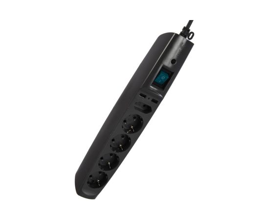 3.Корпус сетевого фильтра с заземлением, шторками и выключателем, черный, 5 гнезд+2xUSB, 2м SFU-5es-2m-B ЭРА C0043326 выполнен из поликарбоната.