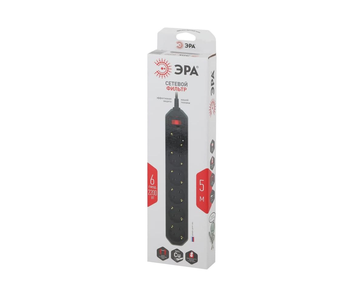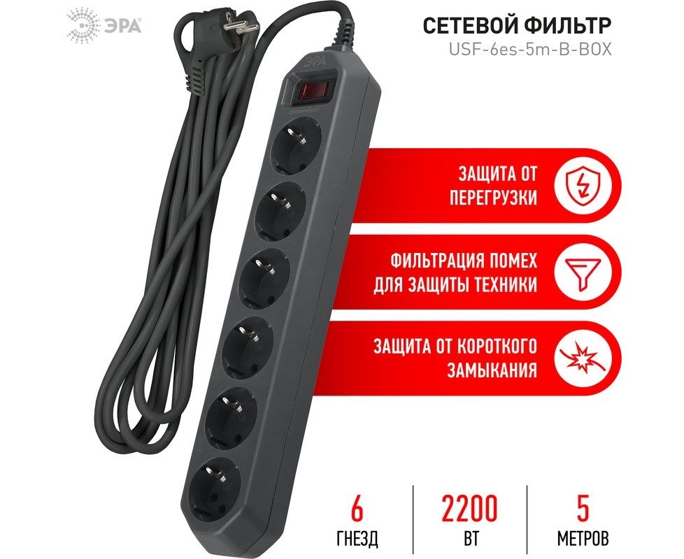 Сетевой фильтр ЭРА USF-6es-5m-B-BOX (Б0037265) 6 розеток 5 м черны