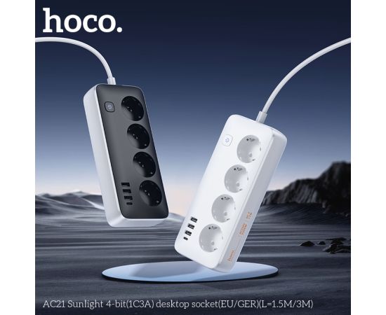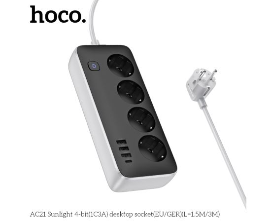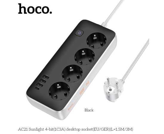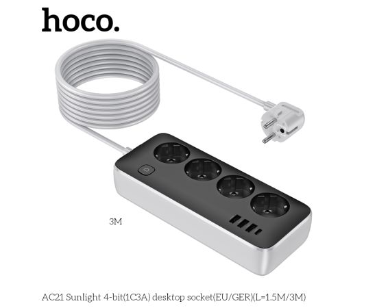 Сетевой фильтр HOCO AC21 Sunlight 4-bit (1C3A) (L=3M) (черный)