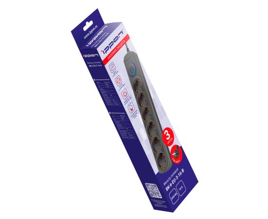 Сетевой фильтр Ippon BK-6-EU-3-16-B (3м 6 розеток черный)