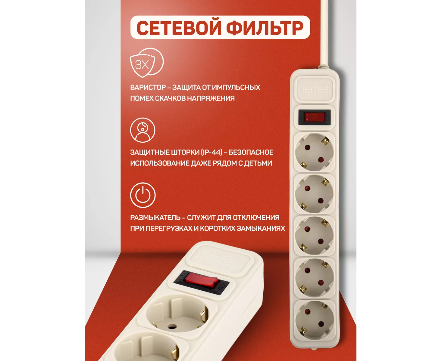Сетевой фильтр повышенной мощности 3,5кВт и максимальным током 16А. Удлинитель надежно работает без перегревов при предельной нагрузке в 16А при 220В. Представлены различные длины проводов. Pilot имеет кнопку - выключатель, который обеспечивает полное обесточивание сетевого фильтра при необходимости. Сетевой фильтр предназначен для широкого спектра бытовой и электронной техники для дома и дачи, включая чайники , электронагреватели , холодильники , телевизоры , мультиварки , стиральные машины , ноутбук , ПК , компьютер , игровые приставки (Xbox, PS) , телефон , и т.д. (рекомендуется перед приобретением посчитать потребляемую мощность всех подключаемых устройств. Не перегружайте фильтр максимальной нагрузкой. Пилот имеет тройную защиту: встроенный варистор от резкого скачка напряжения, предохранитель от повышенного тока и защита детей в виде шторок, которые не позволят ребенку дотронутся до контактов. Фильтр выполнен с применением медного кабеля "ПВС 3х1.5 мм2" провод соответствует номинальному току до 16А при 220В). Электрическая переноска имеет корпус из литого, негорючего пластика. Электрический шнур и контакты розеток - медные. Количество розеток - 5 шт. с заземлением. Сетевой разветвитель имеет предохранитель для защиты от возникающих в электросети импульсных помех, короткого замыкания и перегрузки. Красная круглая кнопка - это сброс предохранителя, который активируется в случае если есть превышения по какой-либо линии защиты (для восстановления работы в случае активации, нужно подождать остывания и нажать на круглую красную кнопку - тройник снова готов к работе).