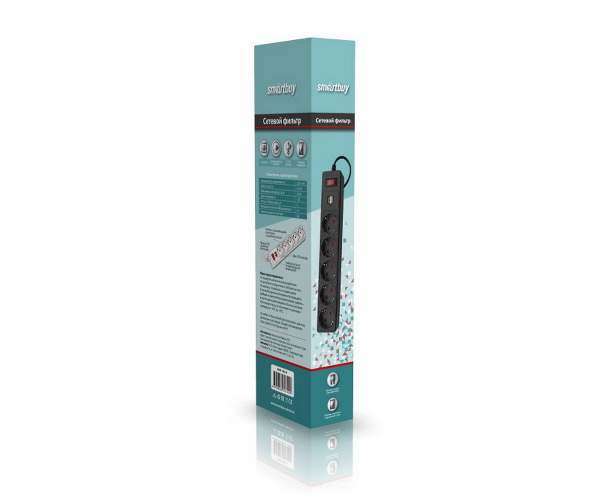 Сетевой фильтр SmartBuy SBSP-18U-K с USB, 10А, 2 200 Вт, 5 розеток, длина 1,8м, черный