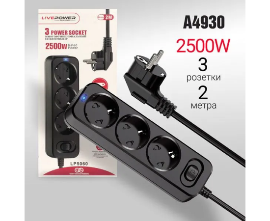 Сетевой фильтр-удлинитель Live-Power LP5060 3 розеток 2000mm Black