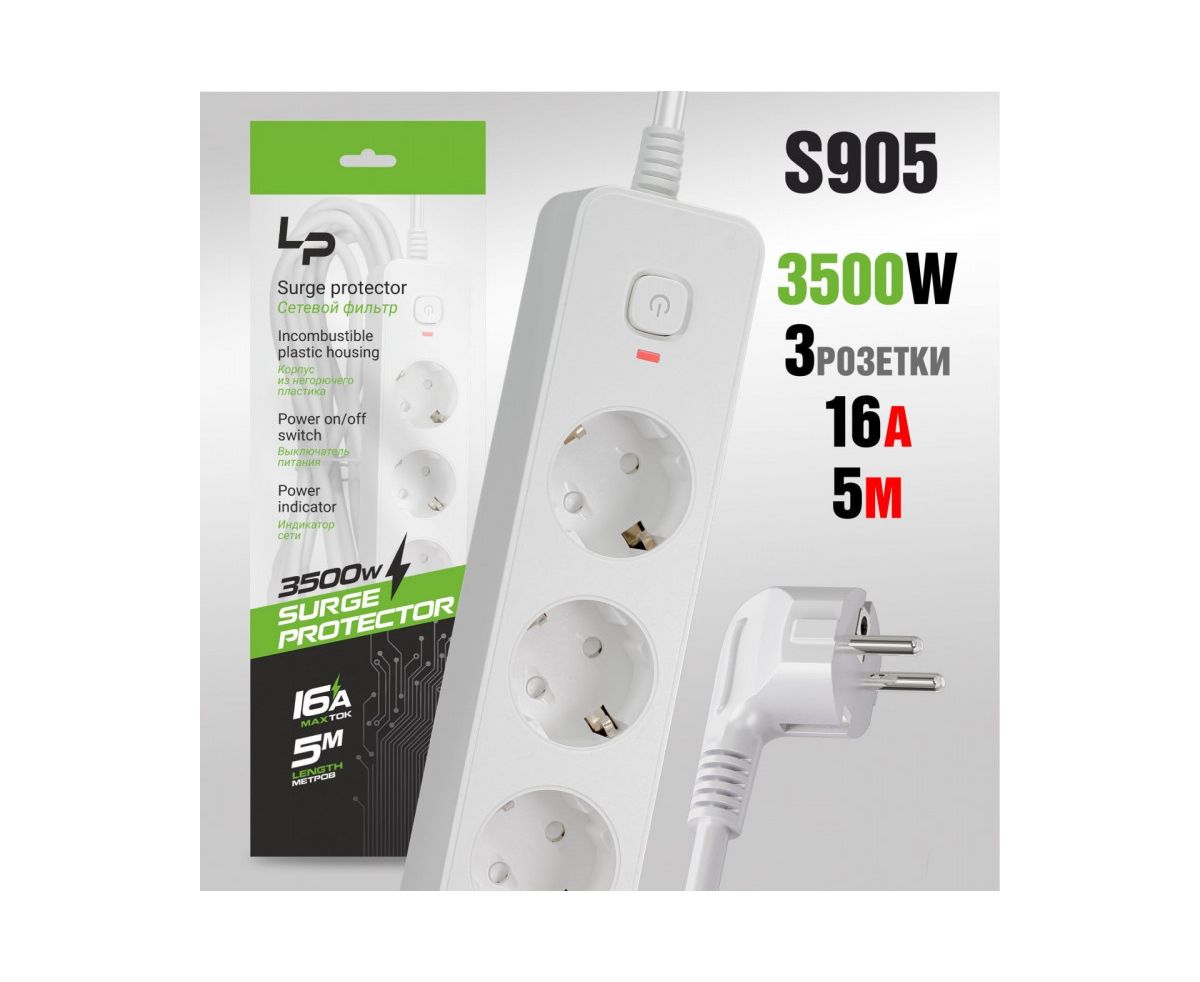 Сетевой фильтр-удлинитель Live-Power LP5105 3розетки С/З 16А с выкл. 5м white