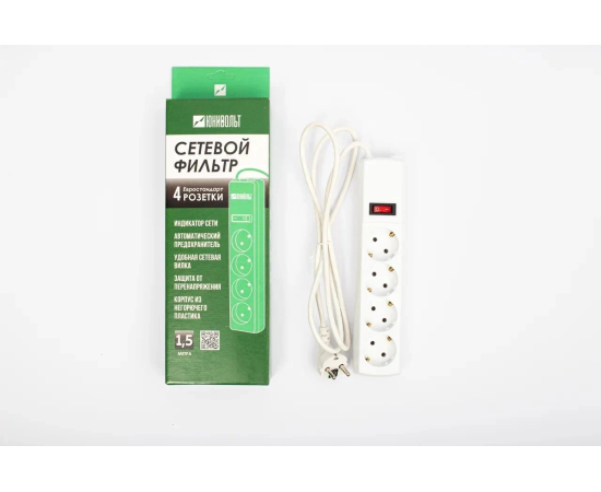 Сетевой фильтр Юнивольт 00-00000386 1.5м 4 розетки белый коробка