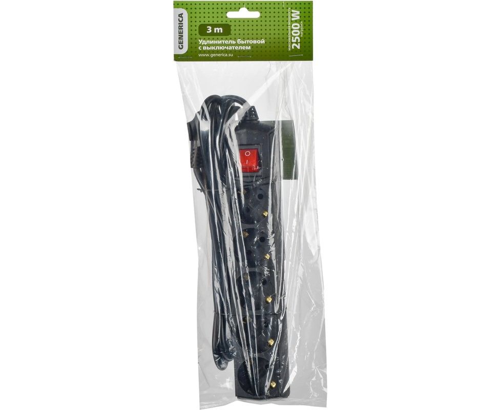 Сетевой удлинитель IEK У05В (WYP10-10-05-03-ZK-K02-G) 3м (5 розеток) черный (пакет ПЭ)