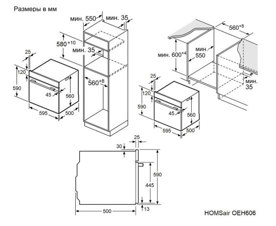 Шкаф духовой электрический HOMSair OEH606BK