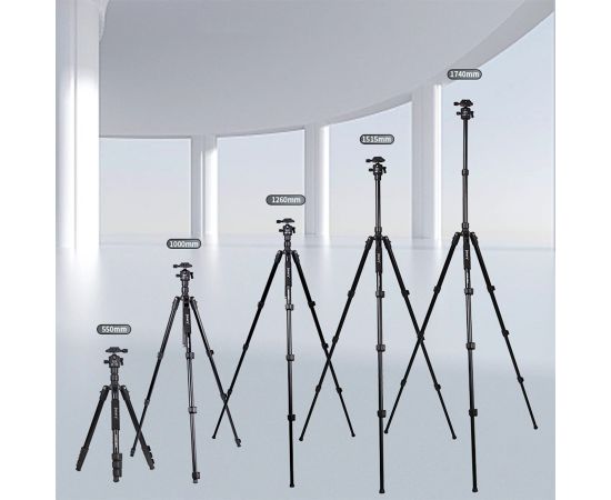 Штатив 2-в-1 1,64 м с панорамной шаровой головкой *Черный цвет * Упаковка включает: штатив * 1, сумка для переноски * 1 * Максимальная рабочая высота: 164,5 см *Минимальная рабочая высота: 42,5 см * Высота в сложенном виде: 45 см * Максимальная нагрузка: 4 кг * Вес: 1,4 кг