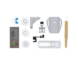 Штопальная пластина закрывает рейки нижнего транспортёра, что очень удобно для выполнения свободно-ходовой стёжки и пришивания пуговиц. В комплекте с машиной поставляются все необходимые аксессуары и расширительный столик, что делает работу с машиной еще более комфортной.