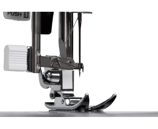 Благодаря 7-сегментной зубчатой рейке, надёжно продвигаются самые сложные эластичные ткани, прекрасно шьётся лёгкая органза.