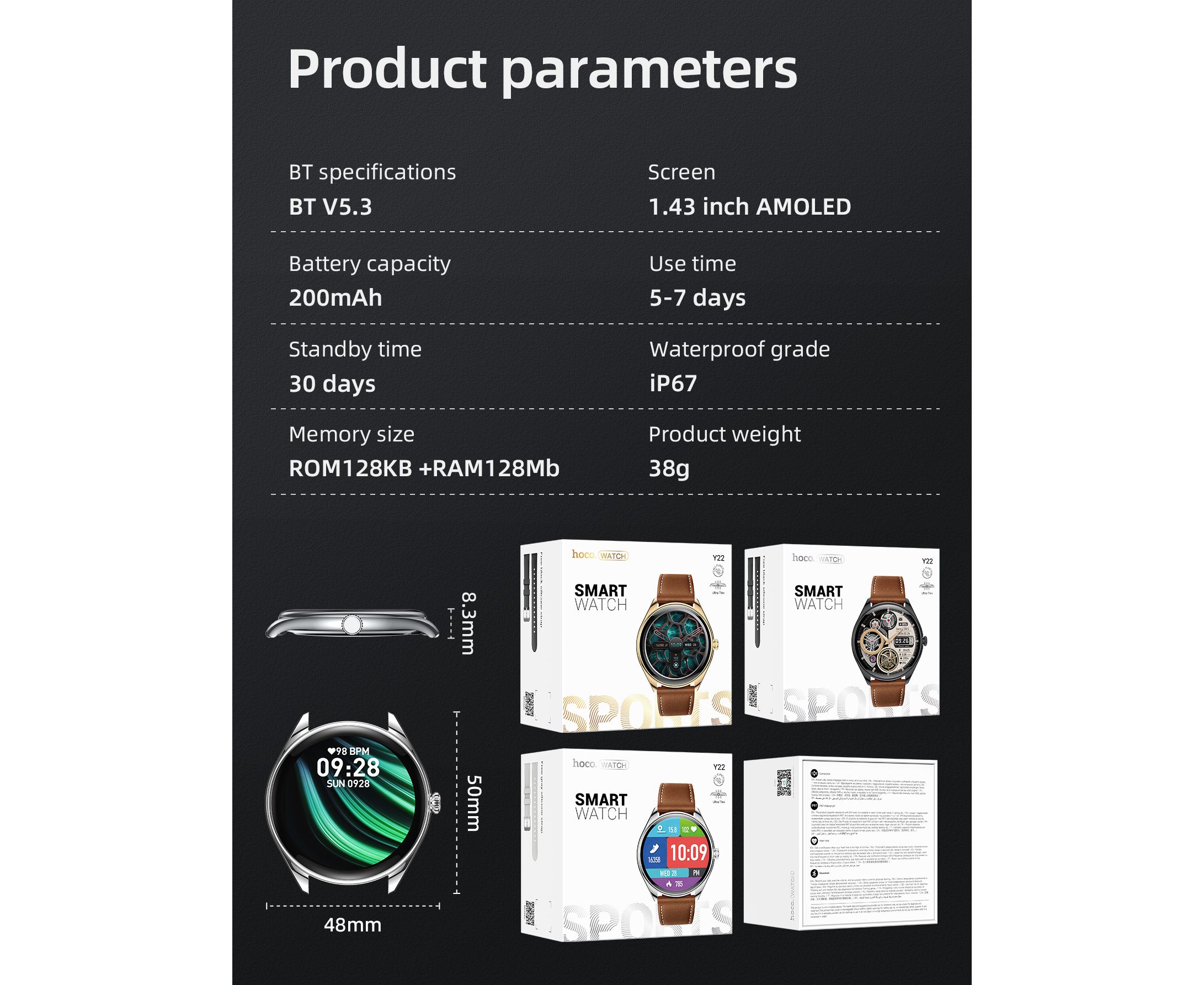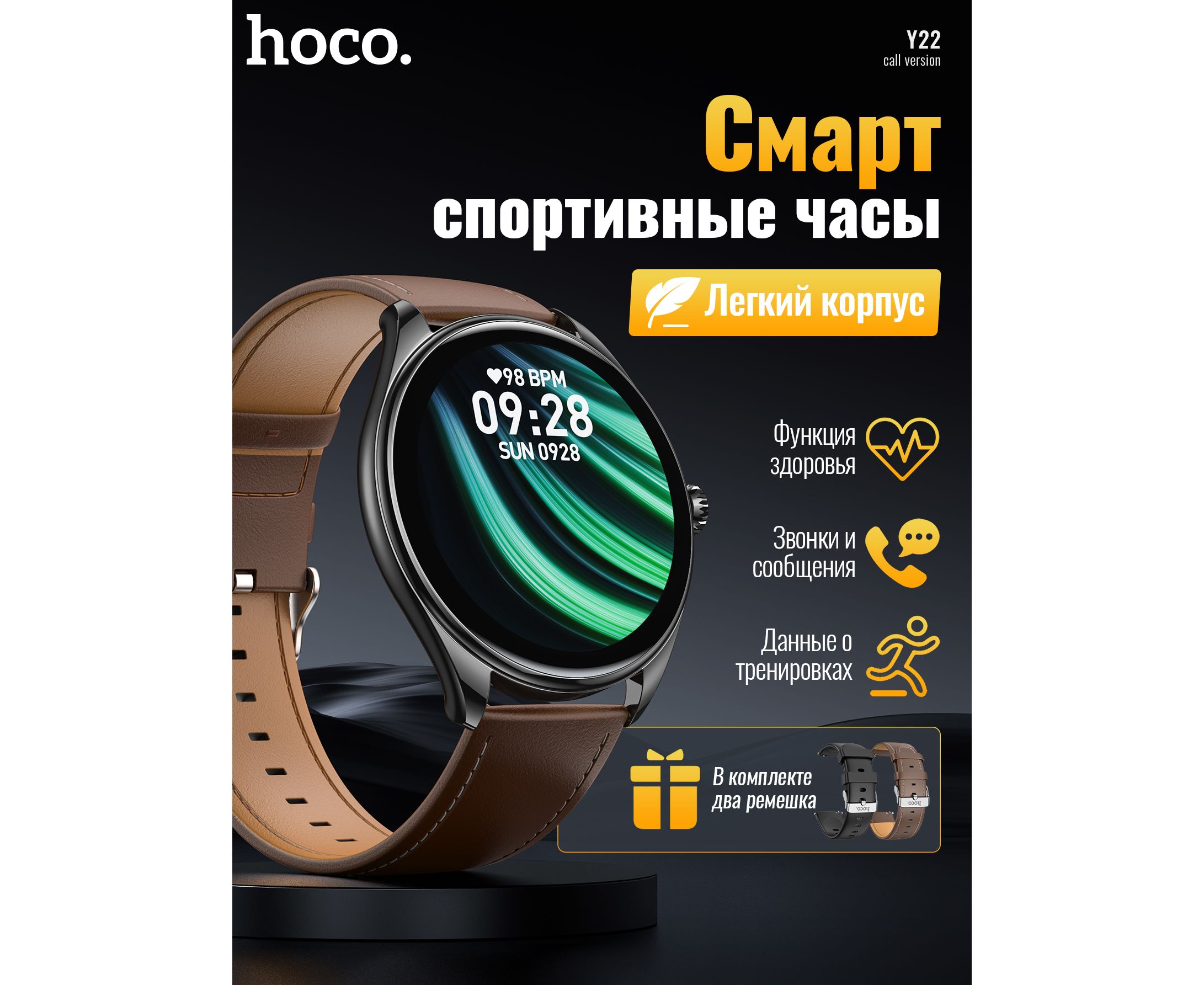 Смарт-часы HOCO Y22 AMOLED Smart sports watch(call version) (черный)