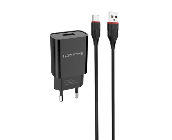 СПЕЦЦЕНА Сетевое зарядное устройство 1USB 2.1A в комплекте с дата-кабелем Type-C Borofone BA20A 1м (Black)