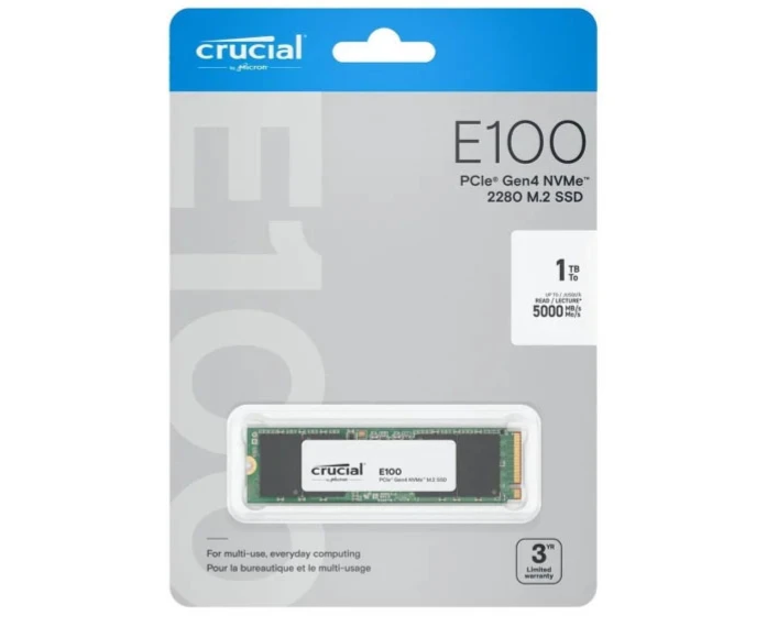 SSD Crucial E100 (CT1000E100SSD8) 1TB M.2, M.2 2280, PCI-E 4x4 (R/W - 5000/4500 MB/s)