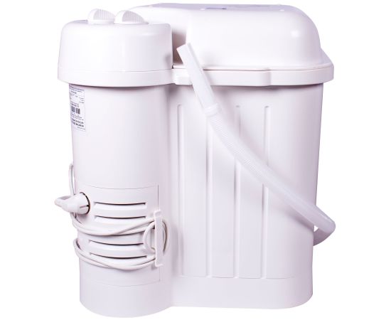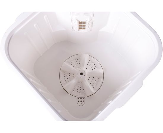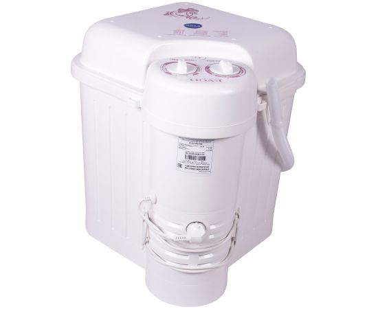 таймер стирки до 15мин, крышка-тазик емкостью 9л, реверс, фильтр для сбора ворса и пуха, отжим отсутствует; максимальная потребляемая мощность (Вт) 245