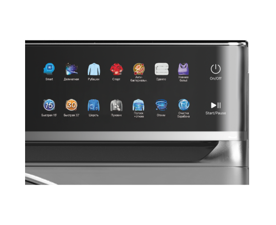 быстрая стирка; быстро 15; деликатные ткани; дополнительное полоскание; нижнее белье; одеяла; отжим; отсрочка старта; очистка барабана; полоскание+отжим; предварительная стирка; пуховые изделия; рубашки; спортивная одежда; стирка с паром; шерсть
