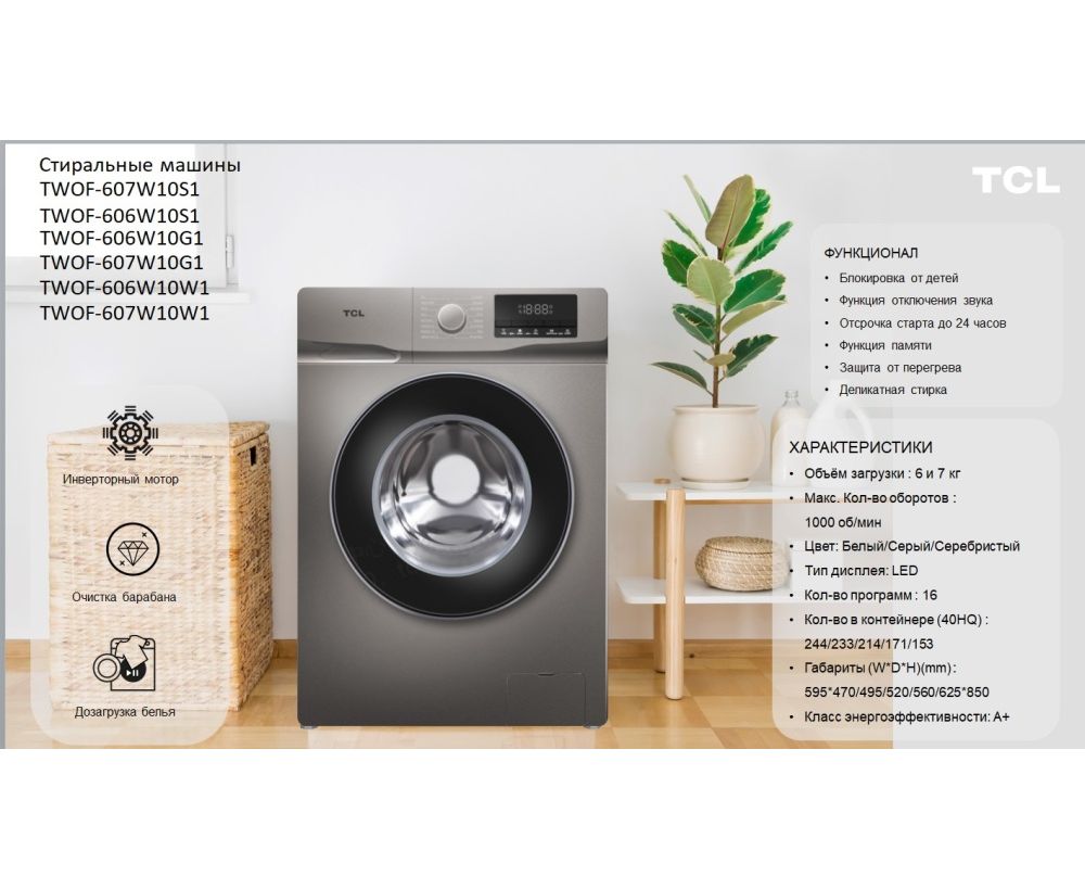 Стиральная машина TCL F6 BLDC (MID) TWOF-606W10S1