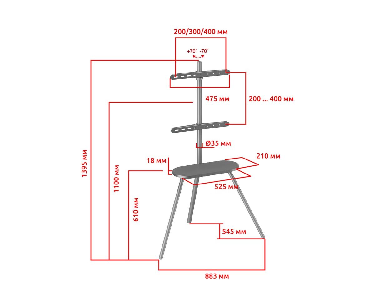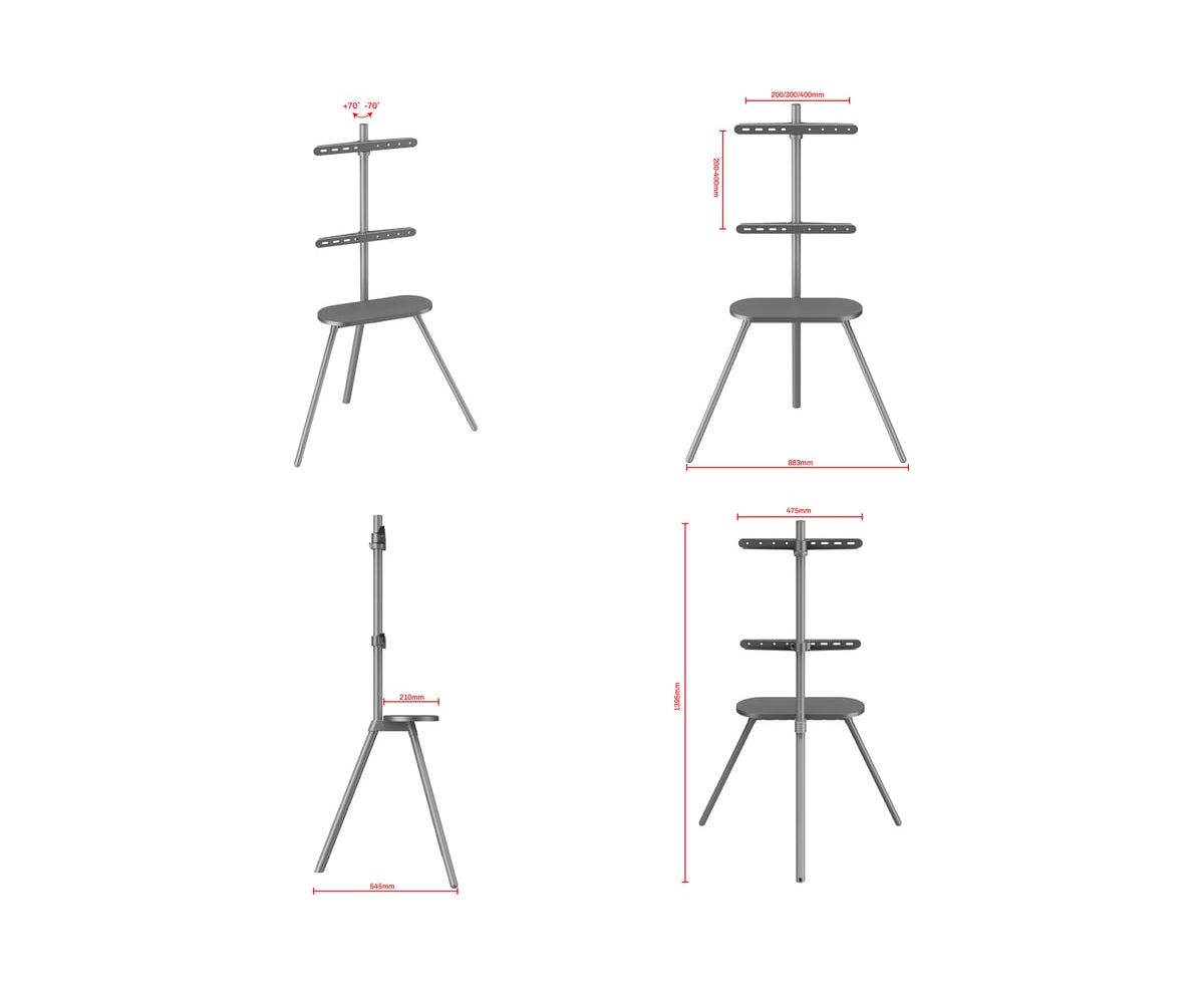 Стойка-подставка UNITEKI ST005NS предназначена для ТВ диагональю экрана от 37 до 65 дюймов (89 – 165.1 см). Интегрированный в колонну кабель-канал позволяет спрятать и зафиксировать провода от ТВ и аксессуаров, что придаст эстетики конструкции. Преимуществом является материал изготовления изделия - оно выполнено из холоднокатаной стали SPCC-класса, алюминия, что обеспечивает его прочность, при этом легкость и долговечность, а наличие декоративной ламинированной полочки, придаст функциональности. Наша стойка даст возможность насладится просмотром ТВ из любой точки комнаты без бликов, благодаря функции поворота экрана на 70° вправо и влево. Простой и понятный процесс сборки, не требует специальных навыков и дополнительных инструментов. Компактность и мобильность стойки позволят удобно организовать пространство: стойку-подставку можно разместить в углу. Стойка имеет съемную, умную монтажную пластину, разделенную на две отдельные части и подходит для крепления панелей с множеством размеров VESA – от 200x200 до 400x400 мм.