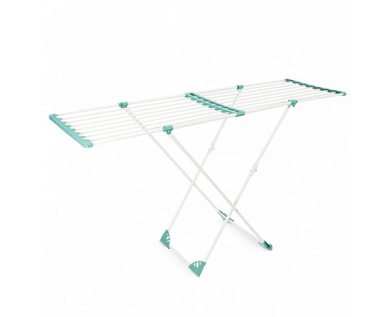 Напольная сушилка для белья AURA Deluxe X это практичное решение для сушки белья дома. Конструктивная особенность сушилки позволяет установить подходящую длину прутьев с помощью телескопического сдвижения. Колесные опоры обеспечивают легкое передвижение сушилки по дому. Диаметр металлических прутьев позволяет сушить белье без заломов. Качественное порошковое окрашивание металлических элементов конструкции защищает от образования ржавчины. Полезная длина для навески белья 20 метров.