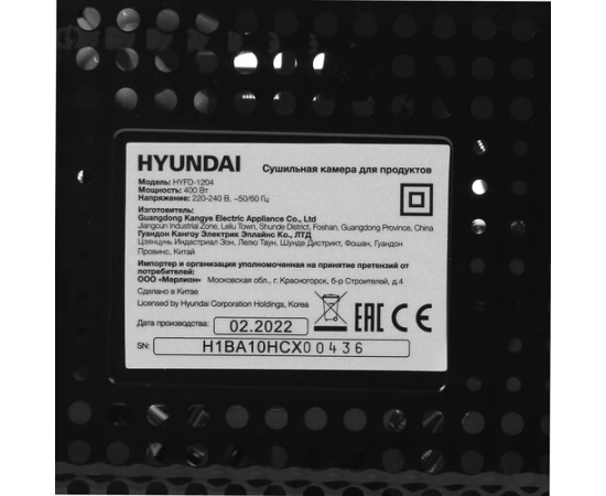 Сушка для фруктов и овощей Hyundai HYFD-1204 черный