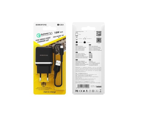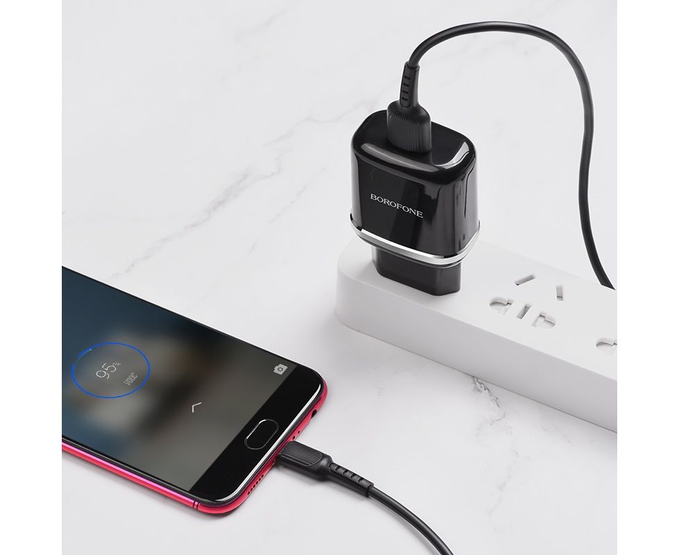 Borofone BA36A - надежное устройство для зарядки телефонов и планшетов. В устройстве предусмотрена многоуровневая система защиты от перегрева, перегрузки и короткого замыкания. Аксессуар поддерживает технологию Quick Charge 3.0, таким образом обеспечивает высокую скорость зарядки. Сила тока составляет 3A при 3,6V - 6,5V, 2A при 6,6V - 9V и 1,5A при 9,1V - 12V. Детали корпуса выполнены из ABC + PC. СЗУ совместим с 99% гаджетов заряжаемых от USB и оснащён интеллектуальной идентификацией подключаемого устройства.