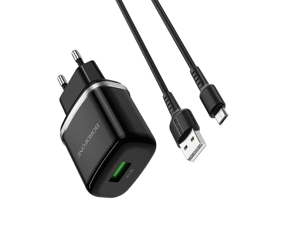 СЗУ 1USB 3.0A QC3.0 быстрая зарядка для micro USB Borofone BA36A 1м (Black)
