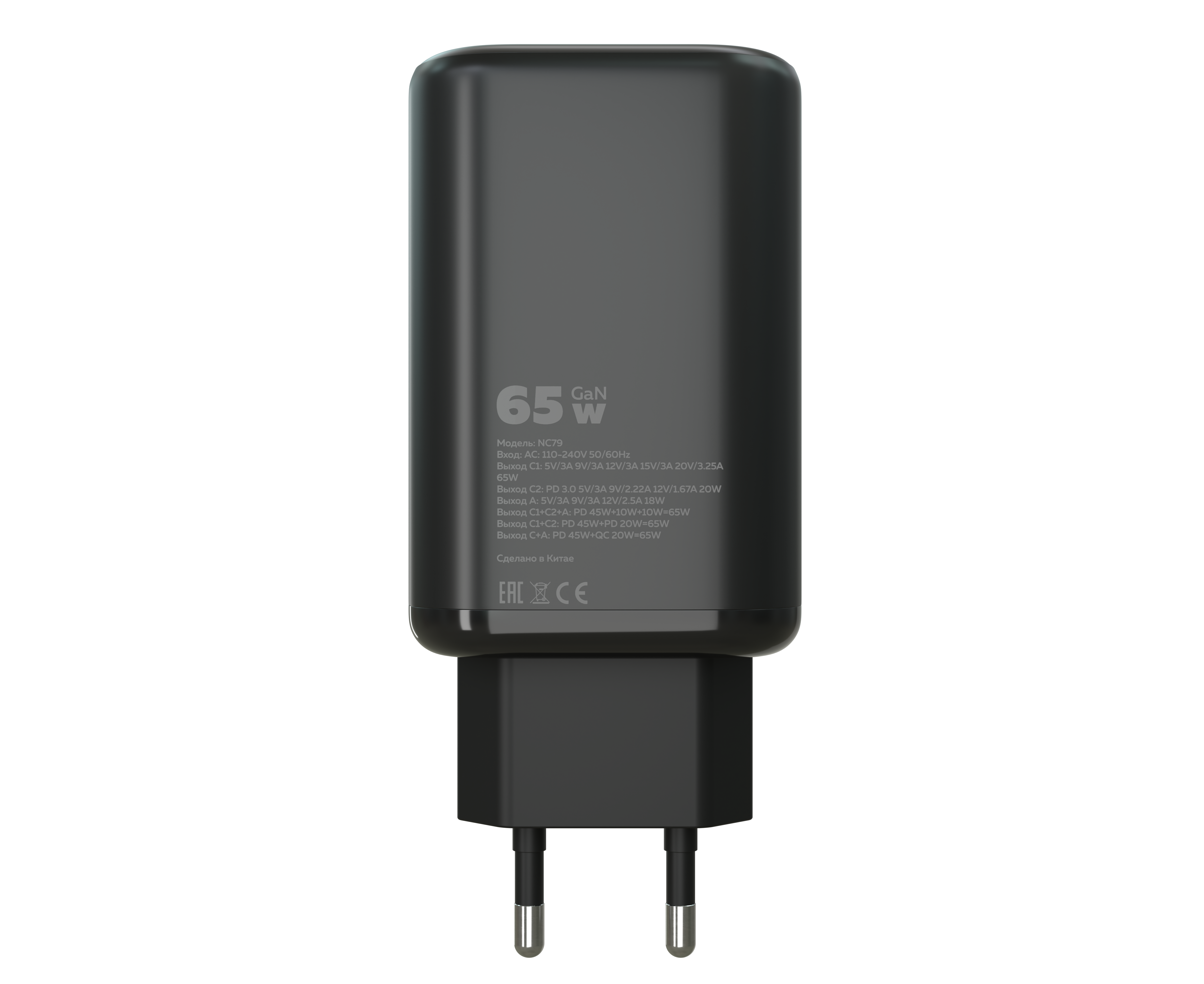 Разъем подключения: USB, Type-C (PD). Количество разъемов: 3. Вход: АС110-240V 50/60Hz Выход С1: 5V/3A 9V/3A 12V/3A 15V/3A 20V/3.25A 65W Выход С2: PD3.0 5V/3A 9V/2.22A 12V/1.67A 20W Выход А 5V/3A 9V/3A 12V/2.5A 18W Выход C1+C2+A: PD45W +10W + 10W = 65W Выход C1+C2: PD45W+PD20W=65W Выход С+А: PD45W+QC20W=65W Led-индикатор: есть. Материал ЗУ: прочный ABС пластик. Размер: 107*46*25 мм. Вес: 100 г. Кабель: Type-C-Type-C 3.0A PD100W. Спецификация медной проволоки: 70 гр. 0,1*2 + 10 проволок 0.1*4. Наружное покрытие: TPE. Материал коннектора: 6-ядерная головка с чипами EMK TYPEC. Длинна: 2 м. Вес: 20 г. Комплектация:сетевое зарядное устройство, Led-лампа, кабель, буклет Цвет:Black,White