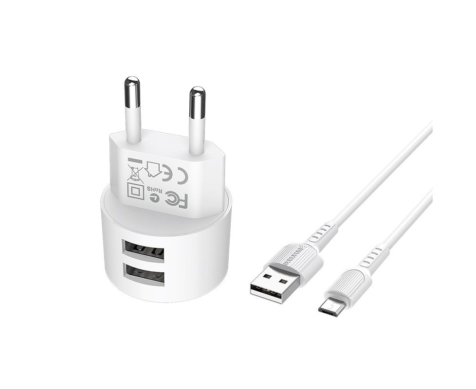 СЗУ 2USB 2.4A для micro USB с IC Borofone BA23A 1м (White)