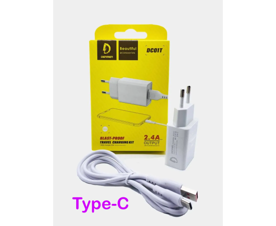 СЗУ 2в1 Denmen DC01T, Type-C, 2.4А, 1 USB, 5V, 1.2 м, белый, фирменная упаковка