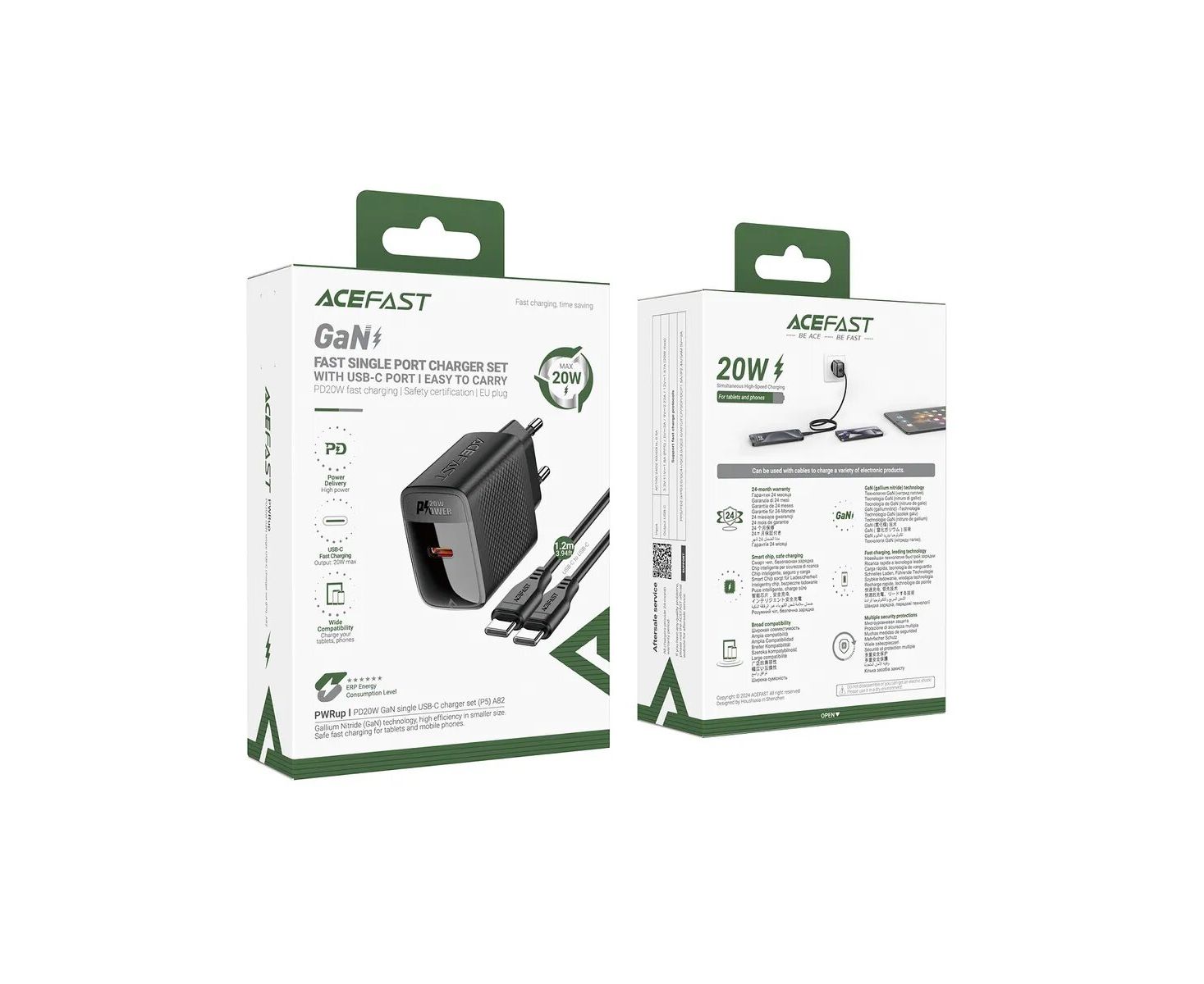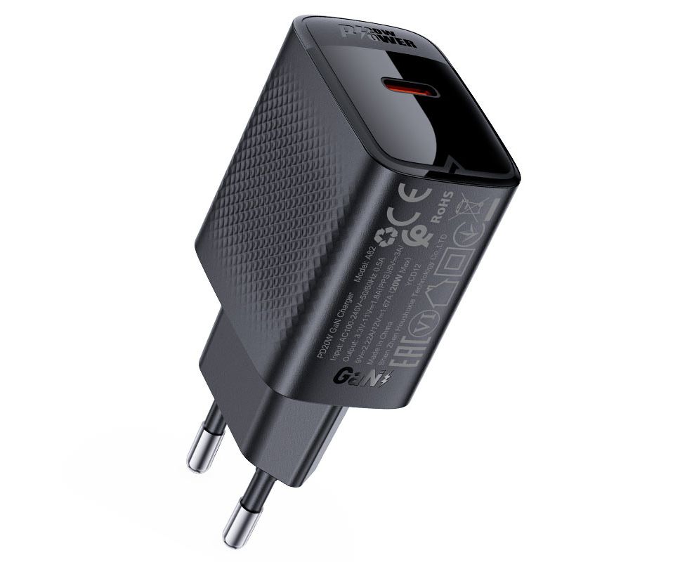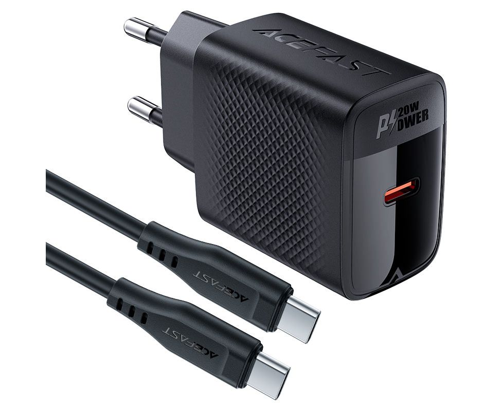 СЗУ ACEFAST A82 PD20W GaN single USB-C charger with USB-C to USB-C charging cable EU Black